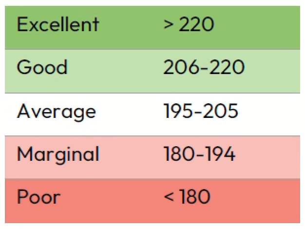 A Volo Score of 200 indicates average domain health in a non-smoking population with no prior major cardiac events or major cancers. Scores above 200 indicate a healthier (above average) domain, whereas scores below 200 indicate a below average health domain. The maximum potential score achievable may differ from domain to domain. Every 20-point change in the score reflects a doubling (200 to 220) or halving (200 to 180) of health probability within the domain.
